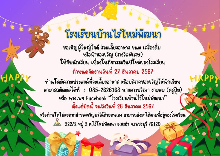 โรงเรียนบ้านไร่ใหม่พัฒนา ขอเรียนเชิญผู้ใหญ่ใจดีทุกท่าน ร่วมส่งมอบความสุขในกิจกรรมวันปีใหม่กันนะคะ
